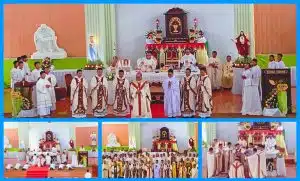Tidak hanya sampai di sini, upacara pembaktian diri ini kemudian disyukuri secara bersama dalam misa kudus yang dipimpin oleh Romo Wim, SMM. Dan juga dihadiri oleh Rm. Lorens, Rm. Dwi dan Rm. Frans. Perayaan berjalan dengan lancar. Ditambah lagi dengan suara merdu nan syahdu dari para frater yang turut memeriahkan perayaan syukur ini. Dalam renungan yang sangat mendalam, Romo Wim berpesan kepada semua yang hadir, terutama kepada anggota PMRSH yang baru membaktikan diri untuk selalu sadar bahwa pembakitan diri merupakan sarana yang mengundang kita semua setiap hari untuk selalu membaharui diri dan janji-janji baptis kita kepada Allah. Selain itu, beliau juga menekankan bahwa peziarahan kita bukan hanya sampai pada tataran upacara pembaktian diri semata.